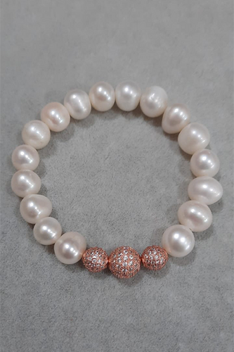 İnci Bileklik 925 Ayar Gümüş Rose Zirkonlu Toplar kullanılarak tasarlanmıştır.