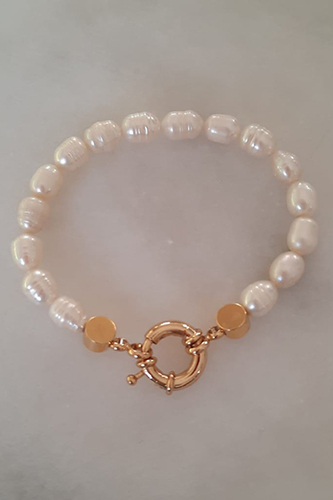 Gemici Kilit ve Gold Detayli İnci Bileklik