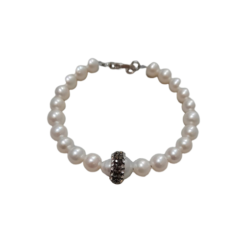 İnci Bileklik çelik tel üstüne inciler getirilerek tasarlanmıştır. Klipsi 925 Ayar Gümüs tür bir adet margazit ve etrafi zirkon taşlı inci kullanılarak üretilmiştir.