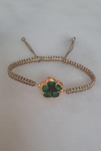 Yeşil Çiçek Bileklik Altın rengi iple örülmüştür.